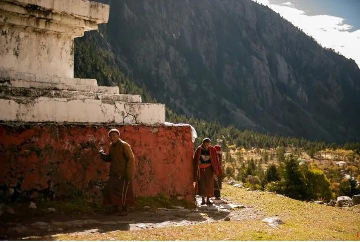 冷古寺有新冷古寺和老冷古寺之分。旧的冷古寺依偎在山谷之中,如同转山者依偎在寺庙中,岁月变迁,互相陪伴。