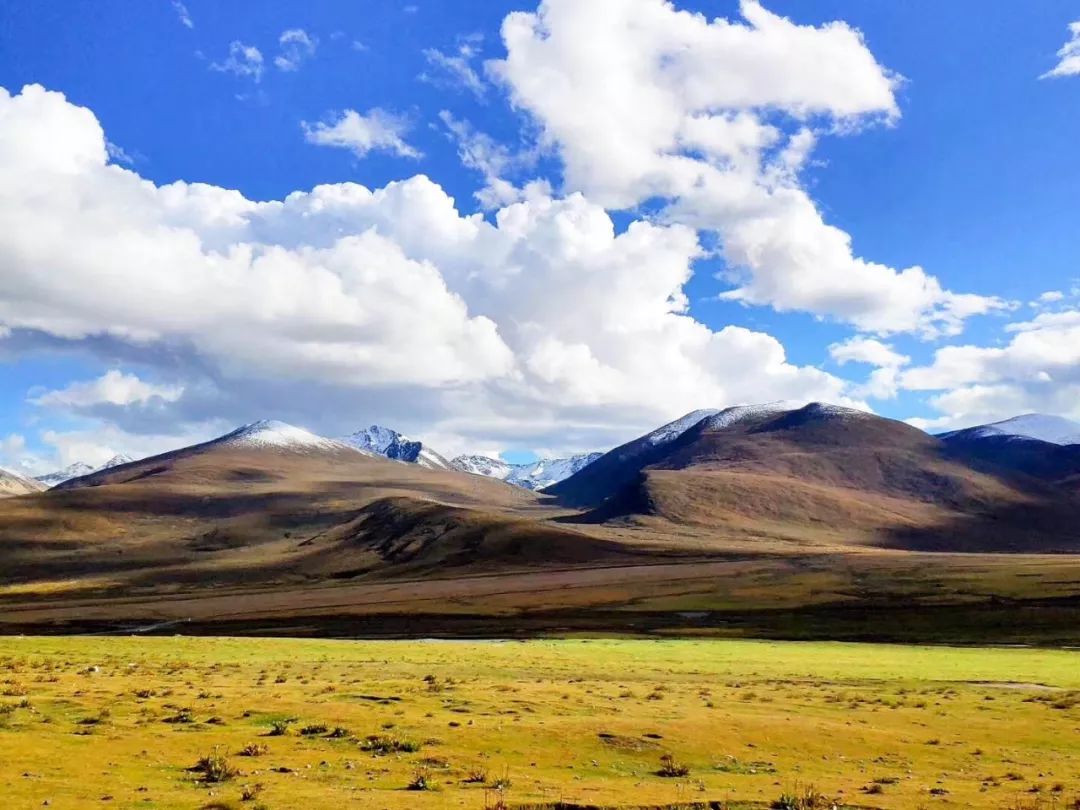 路上随处可见雪山、草原以及悠闲行走的牦牛,不时还能听到一阵阵悠扬的牧歌。