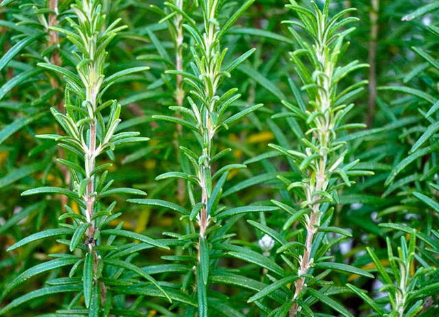 迷迭香,叶针形,株形优美,花色淡雅,常用于香草园地栽或盆栽观赏。还可用于西餐料理香料、精油、香草茶、香草浴、香花包、染色等。