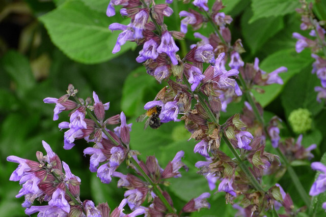鼠尾草,叶灰绿色,花蓝紫色,可作为花境、花坛栽植植物及盆栽观赏,还可用于烹饪调味料、茶饮、精油、沐浴、香花包、花艺等。