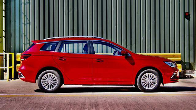 外观方面,新车与国内荣威Ei5旅行车的外形基本保持一致,不同的是悬挂了名爵LOGO车标。前脸部分采用倒梯形设计,大灯组与镀铬饰条相连,长宽高尺寸分别为4544/1818/1536mm,轴距为2665mm。