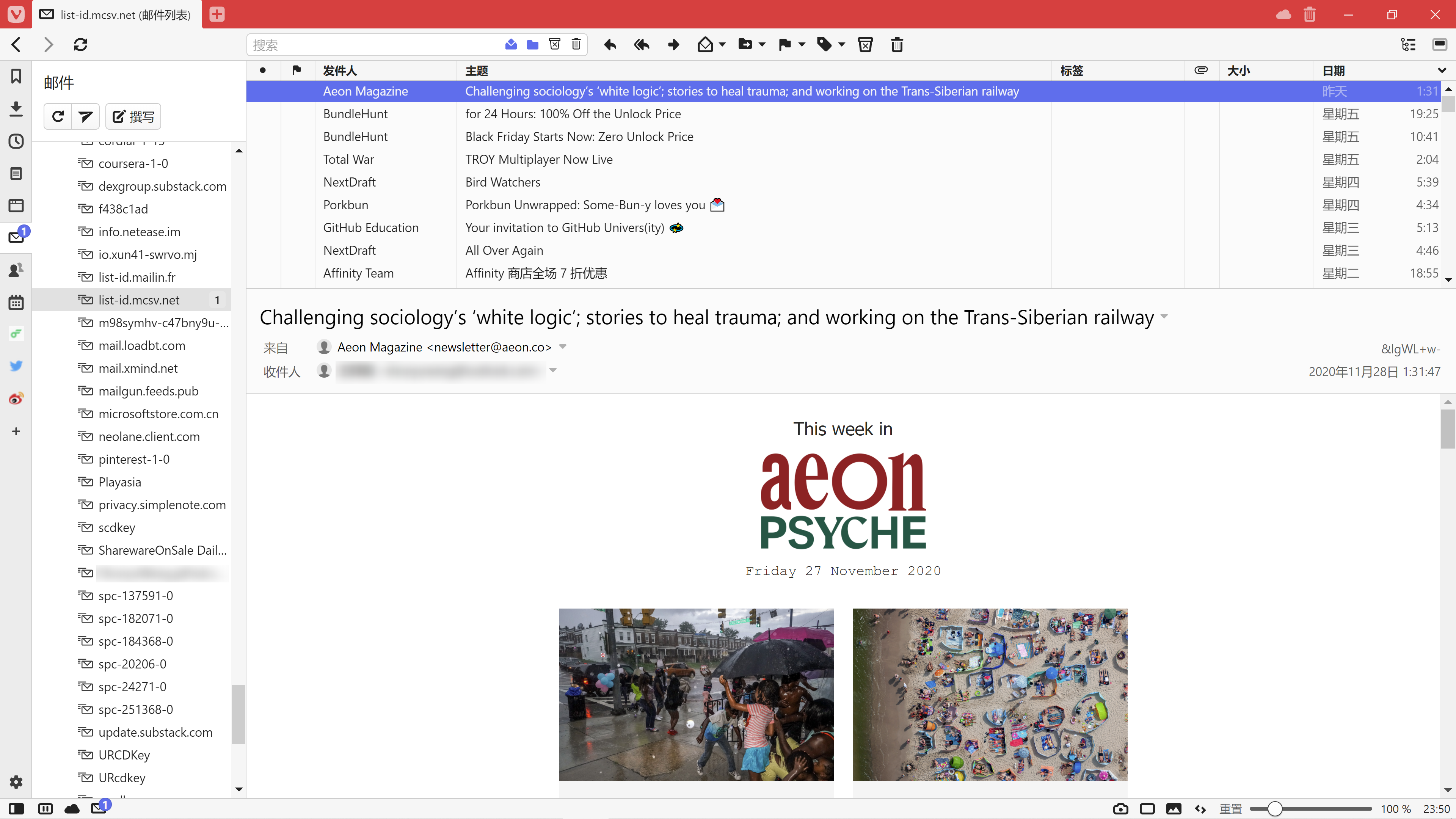 我们都会订阅一堆邮件:新闻媒体的报道摘要,关注博客的最新动态,购物网站的折扣精选……Vivaldi Mail 会自动识别这些邮件列表,把它们整合在一起。你也可以手动将指定发件人视为邮件清单,并依照重要程度归类。不过,就我个人体验来说,这一功能还有待完善,许多完全不同的邮件都被归类在一起,而同一发件人的邮件又进了不同的列表,名称也难以辨识,可用性较低。