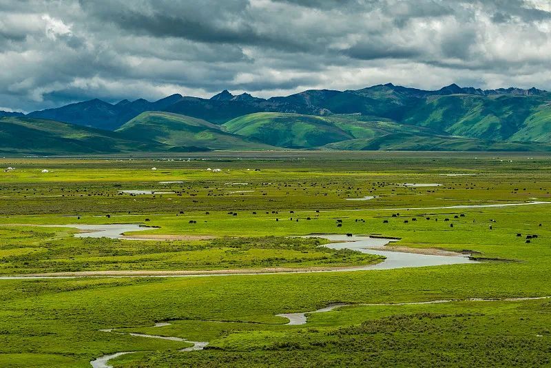 再加上湖畔绿茵般的草滩上成群的牛羊以及一块块生长着青稞、豌豆、油菜等作物的农田点缀其间,构成了一幅既有青藏高原独特的壮丽风貌、又有藏区田园牧歌般风韵的风情画卷!
