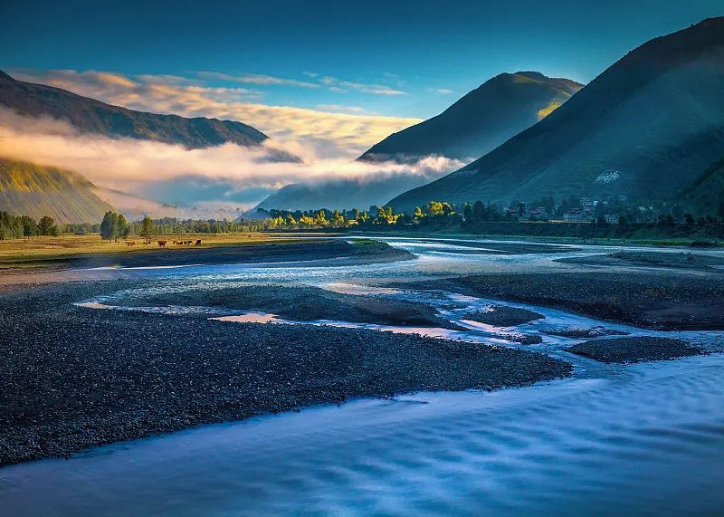 平原、高山、峡谷、河流、草原、冰川、森林、野花、海子、雪山、湖泊、温泉、民居等迥然不同的景象,美到极至,触目可及。