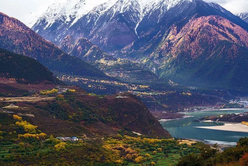 雅鲁藏布江绕山而行,造就世界第一大峡谷在此与世界第十五高峰相遇,南迦巴瓦的刚烈与雅鲁藏布的壮阔相得益彰,波涛汹涌而下,山与水融合得天衣无缝。