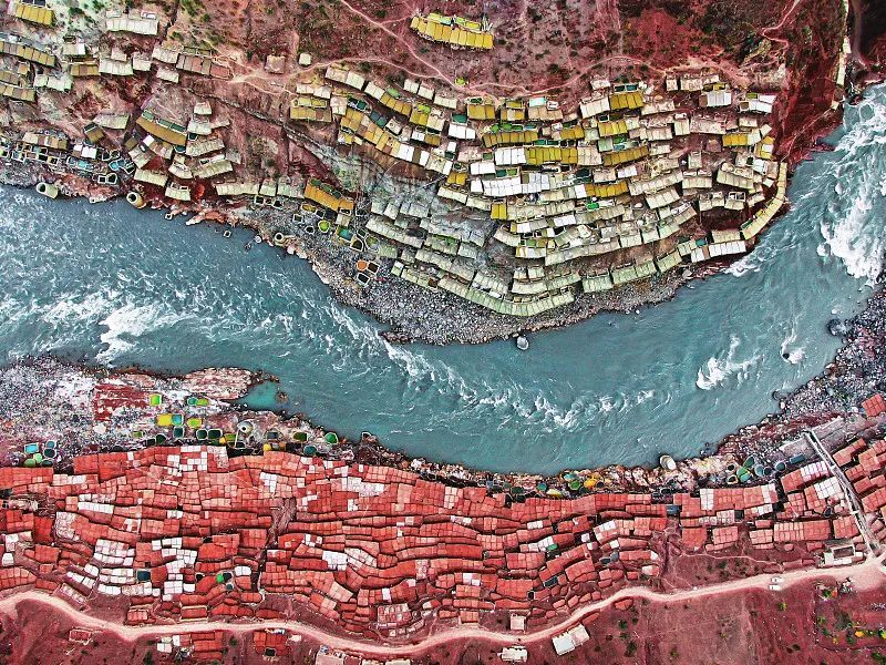 远方的路弯弯曲曲,当车行驶竹卡小镇之际,只见四周是一片苍凉的山脉,山谷中,却矗立着悬崖般的壑壁,我惊愕于这片褐红色,不知是山染红了水,还是水浸润了山,裸色的岩壁寸草不长,浑浊的河水义无反顾地远去,那份烈火般的色彩燃烧着所有的过客。