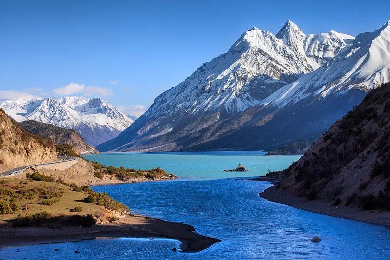走近然乌湖,她仿佛幽蓝深遂的湖水恍若天空滑下的一滴眼泪,寂静得没有丝毫声息。湖岸岩石林立,雪山就在不远处,安安静静地倒映在湖面。保留了世界难觅的原始美。