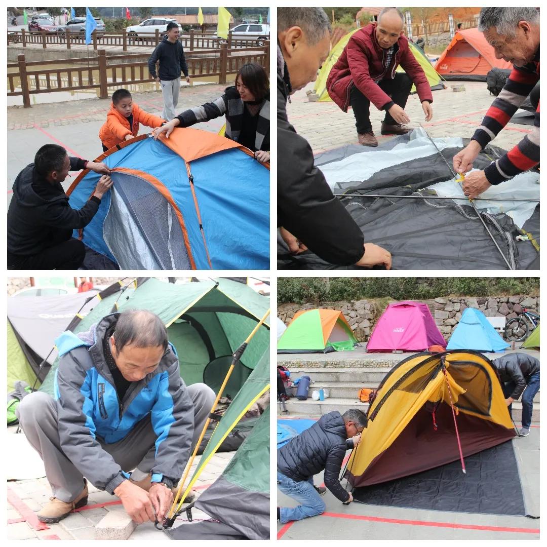 大家陆续抵达,动作娴熟麻利地支起帐篷......