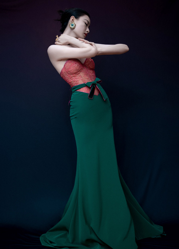 看了倪妮的造型,我们其实会发现红配绿并不难看,倪妮的造型师很懂的整体造型中绿色和红色的面积,主次分明,大面积的绿色点缀上小面积的红色,所以这样看起来并不显得突兀。