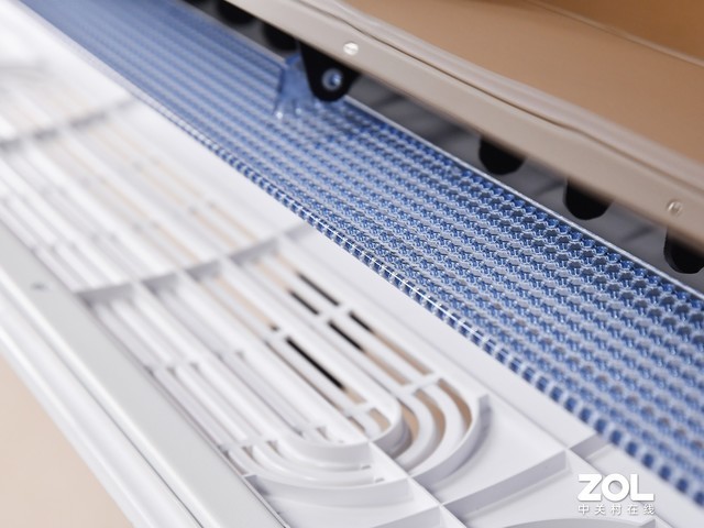 比如在下出风口处,可以看到这款空气环境机采用了双层的导风板设计,中间蓝色的导风板更是采用了微孔导风设计,这样设计的好处就是柔化空调吹出来的气流,达到只有温感没有风感的效果,充分避免冷风直吹对产妇的影响。