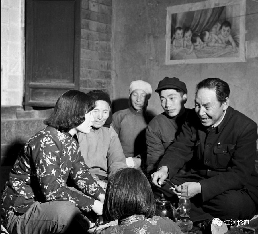 【1958年,赵树理的女儿赵广建(左一)回家参加农业生产,赵树理(右一)也回来故乡工作。这是赵树理一家人在一起。(新华社记者 张瑞华摄)】