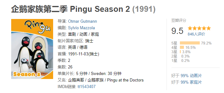 虽然年代久远,但《企鹅家族》的豆瓣评分高达9.5,可以说是一部经典作品。