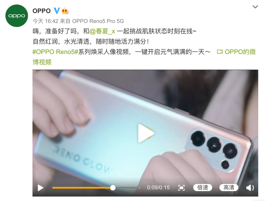 @周冬雨:OPPO Reno5焕采人像视频,一键“焕亮高光肌”!