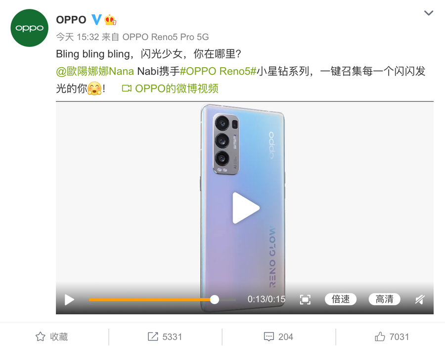 @歐陽娜娜Nana:Nabi携手OPPO Reno5小星钻系列,一键召集每一个闪闪发光的你。