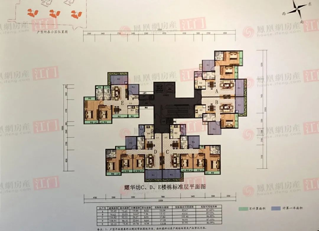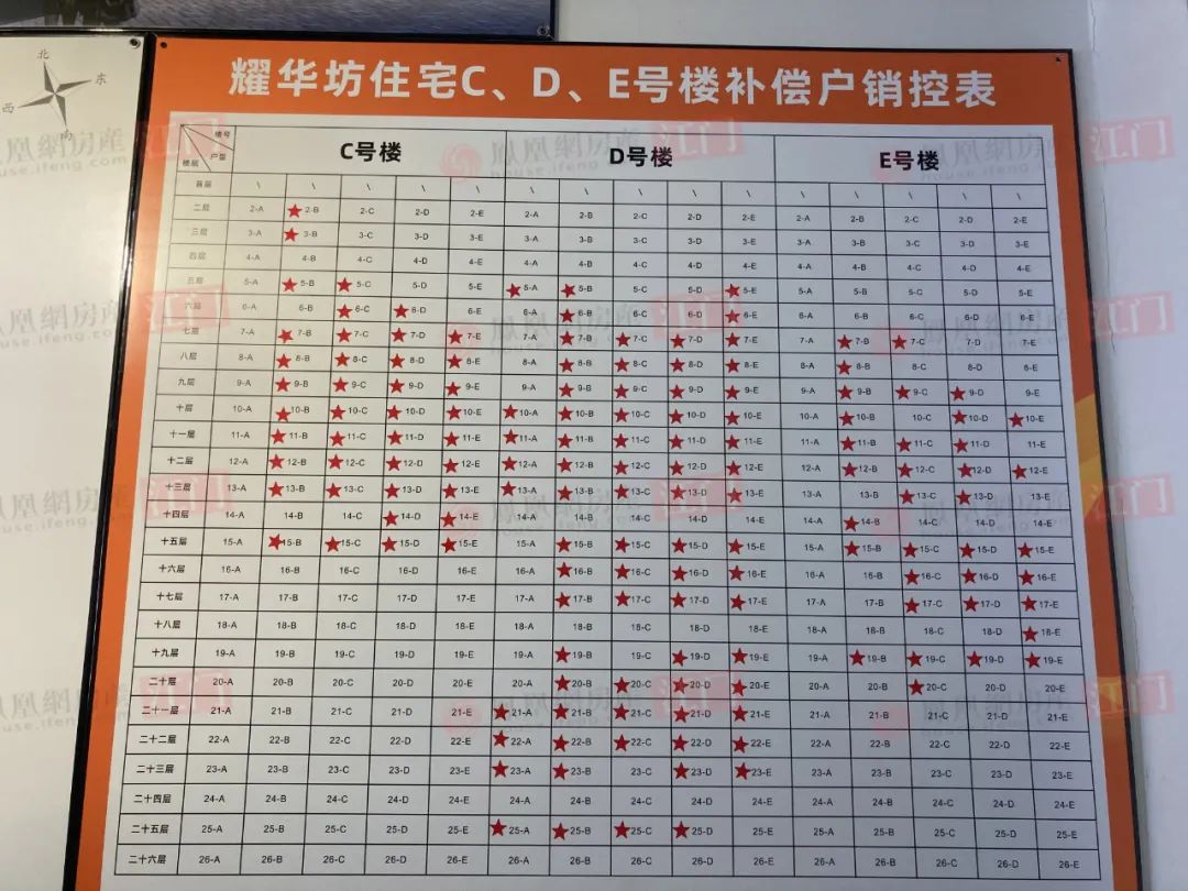 根据展厅公示信息可见,耀华坊规划回迁住宅为C、D、E号楼,户型建筑面积约116/108/95㎡,两梯五户设计。