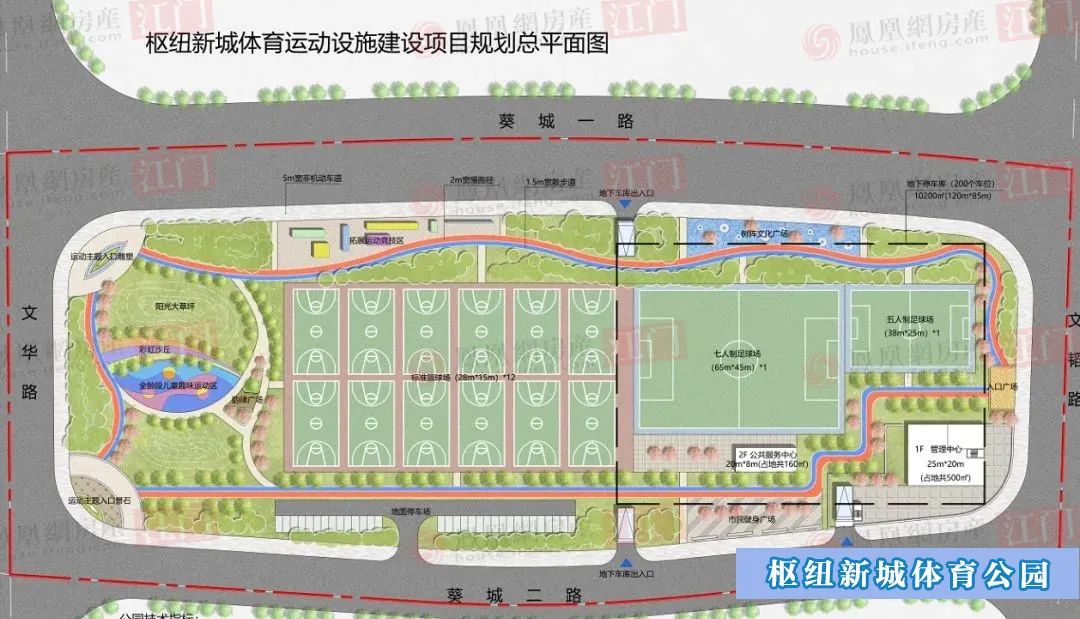 该体育运动公园是新会区唯一配备地下停车场的集休闲、运动及防护一体的基础设施,是枢纽新城核心区域的一个重要配套设施。