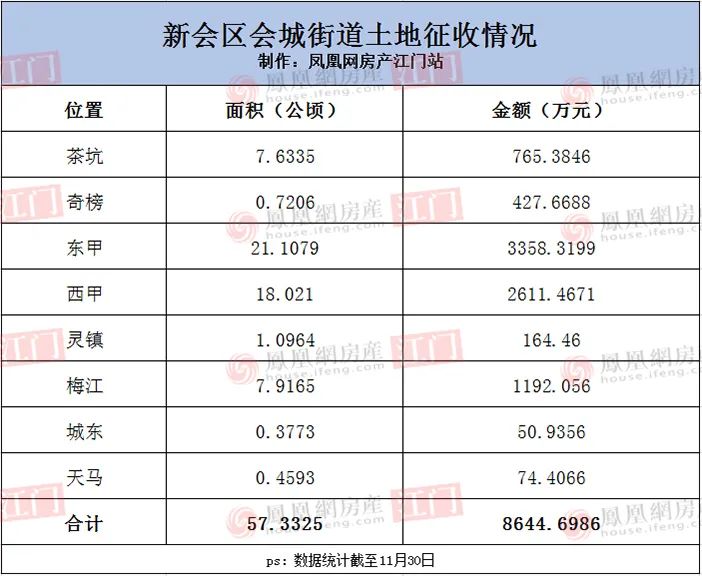 作为新会的核心城区,截至12月前,会城片区征地总面积约 57.3325公顷(860亩) ,计算 赔偿金额近8645万元 ,征地规模是整个新会区最大的地区。