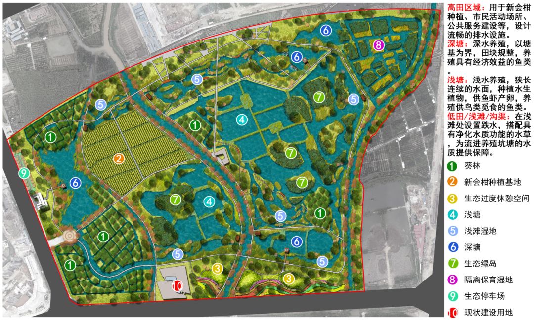 将结合当地独有的葵扇文化、柑橘陈皮文化、水鸟保育文化等元素,分为三部分打造。