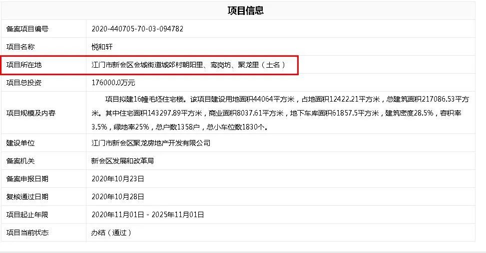 值得注意的是,该项目早在10月已进行备案,项目命名为悦和轩,建设用地面积约44064㎡,容积率3.5%,绿地率25%。
