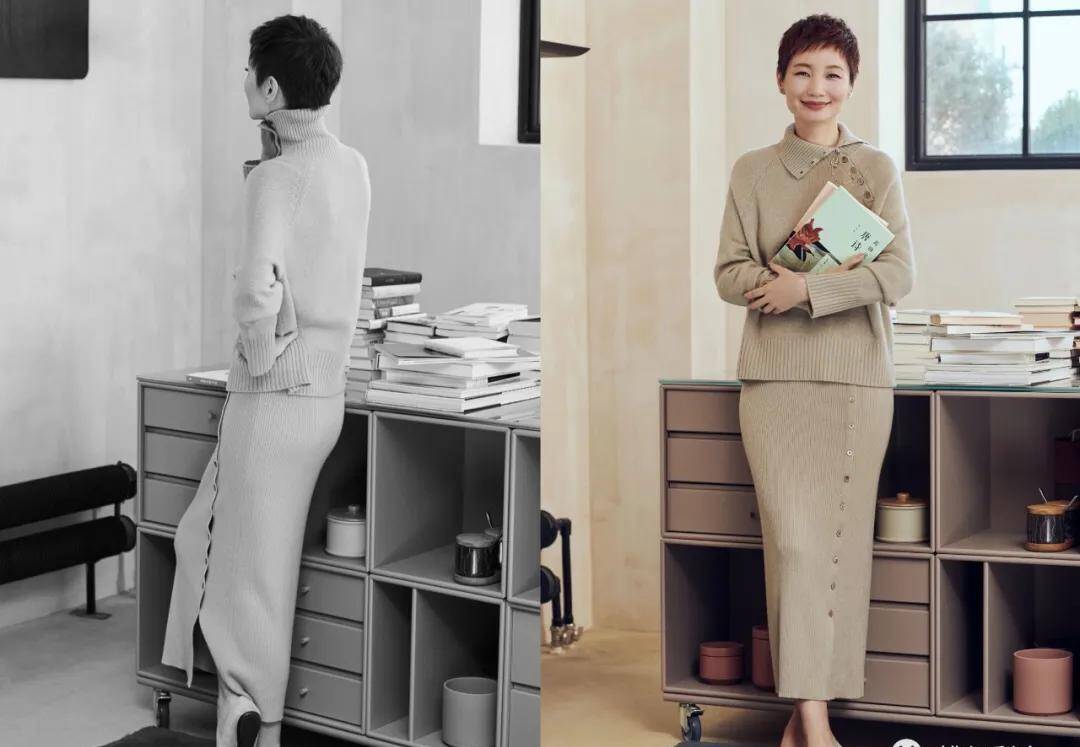 每到9、10月份,她最爱的就是穿着一整套的羊绒,待在办公室里处理工作。