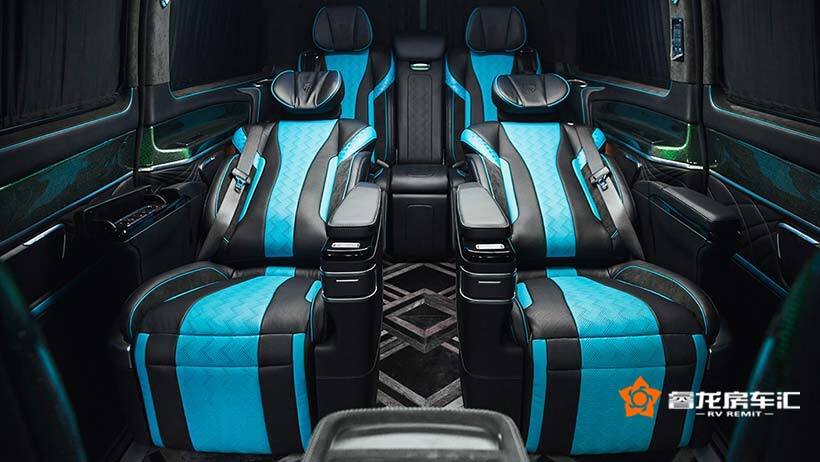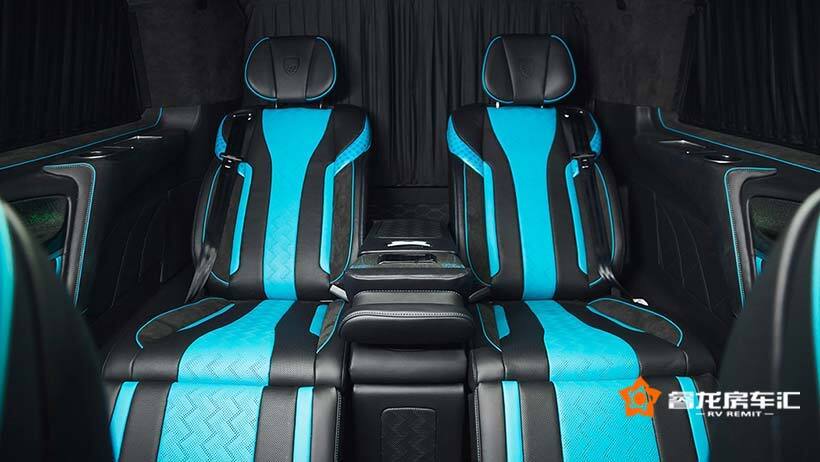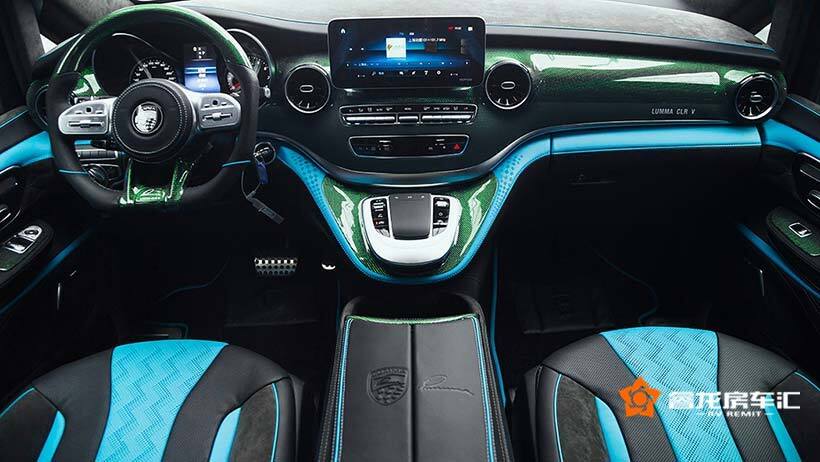 前舱内饰,非常明显的LUMMA元素以及独有的个性化内饰风格表现。点、线、面间的层次非常丰富和鲜明。类AMG车款的平底多功能方向盘设计,高清仪表盘,悬浮式中控等等,科技仪器设备能提供很好的驾乘体验,而细节处理,材质装饰风格上体验的是LUMMA CLR V新款商务车的品质和奢华感!