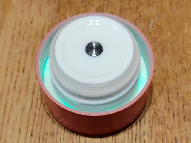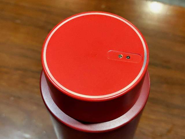 打开德国Simita施密特人工智能物联网保温杯杯盖观察,杯盖整体纹理、防水胶垫等,依旧还是与普通的保温杯没有任何区别。但要注意,在的杯盖正中心位置上带有一个金属点,这才是保温杯的核心测温传感器所在,而且整体的杯盖的橡胶还采用了Tritan材质的硅橡胶,更具隔温防漏的效果。