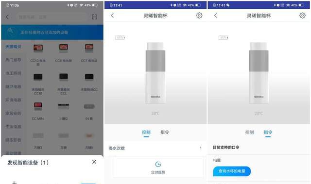在不看说明书的情况下,也可以通过《天猫精灵》APP,我们了解到这款德国Simita施密特人工智能物联网保温杯拥有控制功能和智能语音指令体验。重点是,我们能够通过智能语音助手天猫精灵,询问“水杯的温度是多少?”来精确地了解杯中的水温状况,这精度还等达到摄氏度的个位数,更加方便冬天来临时,喝温水的体验。