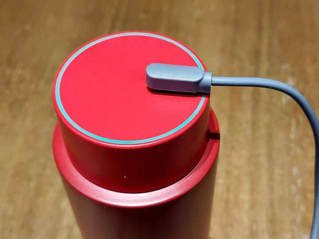 当带有磁吸功能双镀金触点的充电线吸附在德国Simita施密特人工智能物联网保温杯杯盖上充电时,杯盖一圈的环形指示灯会亮起与杯身颜色截然不同的绿色的灯光,而且还带来整体呼吸灯的灯效。