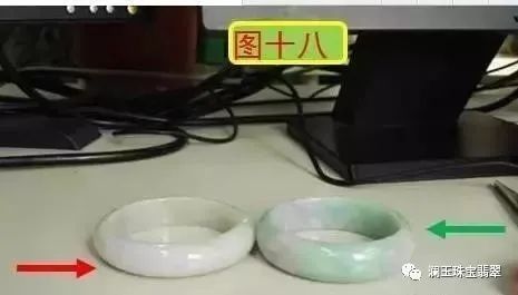 7、“疗养”:有些翡翠刚刚买回来的时候感觉还是很水润,甚至还有点淡淡的绿色,但一段时间过后就淡了,感觉水头也变差了,这是因为你的这块玉用了抛光粉对玉石表面进行了抛光,这会把玉石的翠部分“烧”掉“一层”。
