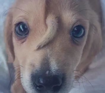 原来这只小狗除了身后的尾巴,还长了一条在脑门上。