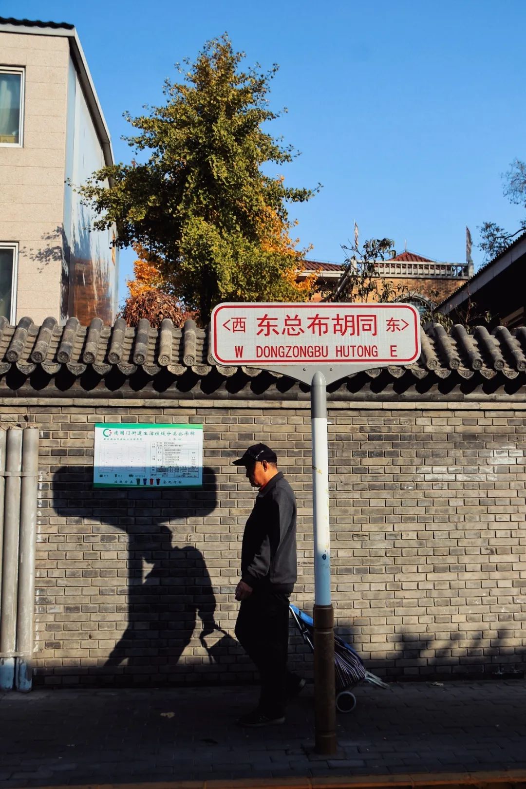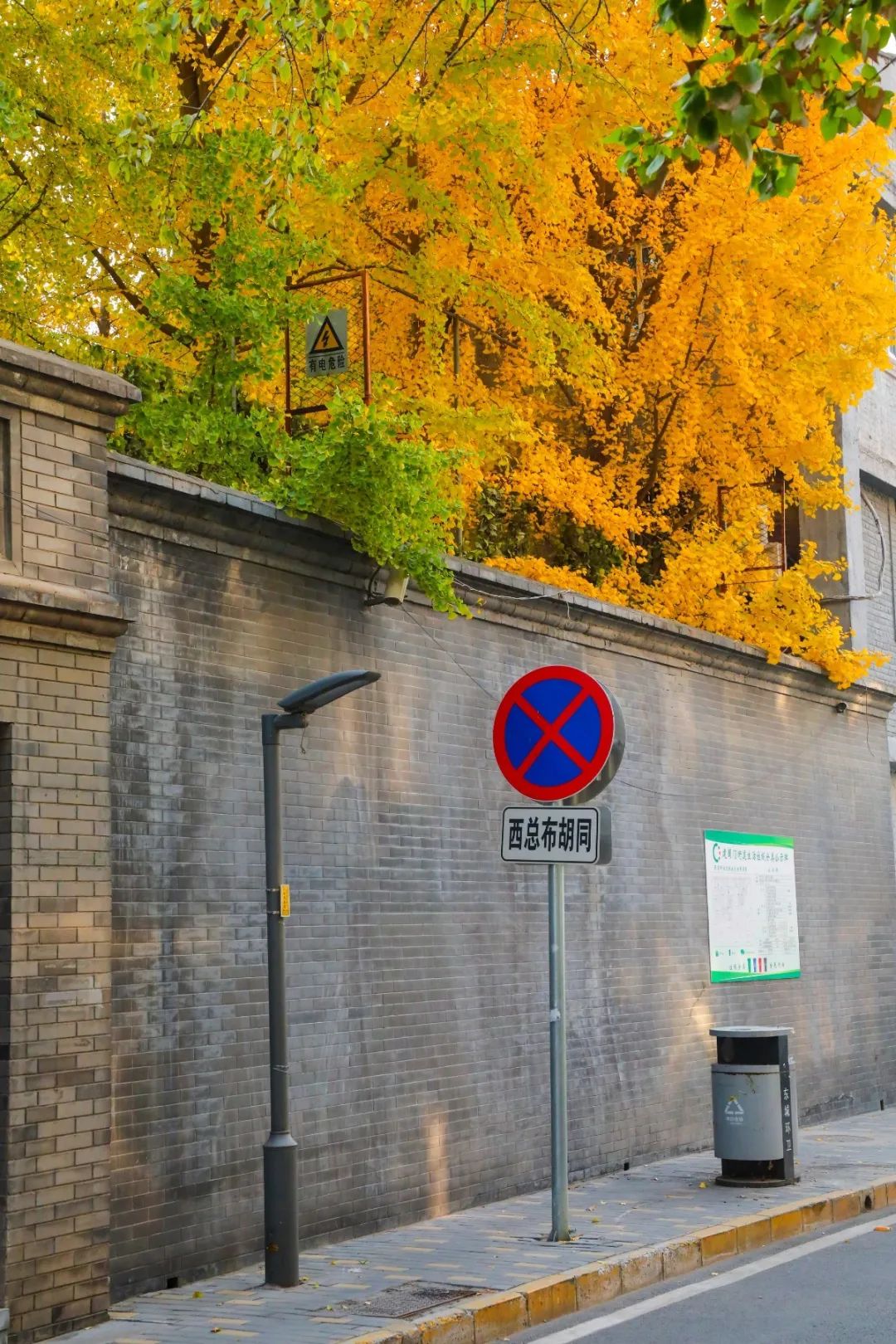 没有嘈杂的人群,繁忙的车流,零星有路人走过,观赏着围墙里冒出头的金色秋叶,独自静静散着步,胡同里最惬意的秋冬,大抵就是这样了吧。
