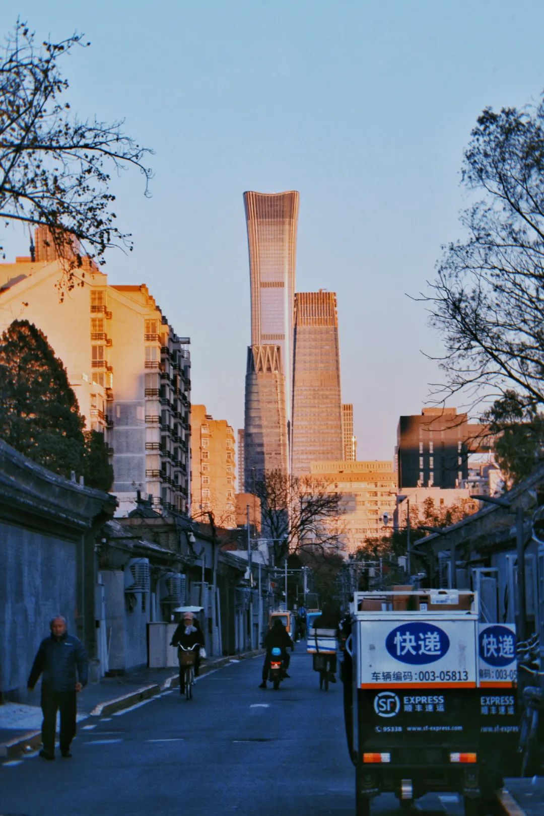 透过老北京的胡同一眼望穿CBD,遥远的中国尊和老北京胡同同框出现,见证600年的变迁。