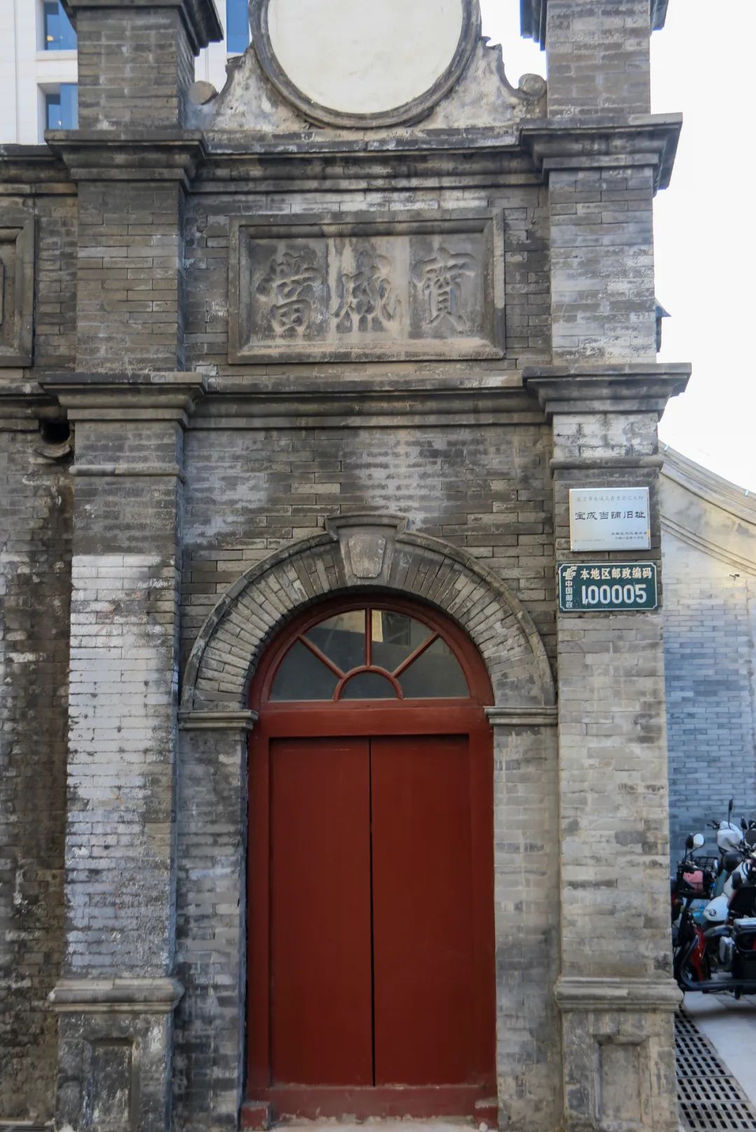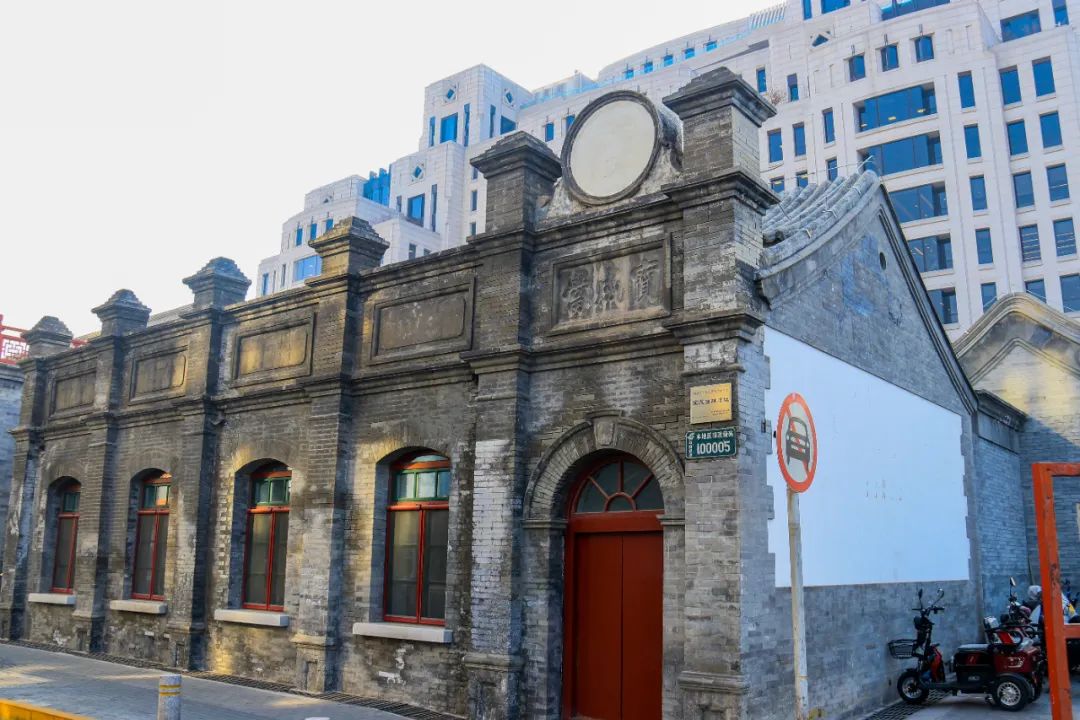东总布胡同和西总布胡同的路口,是宝成当铺的遗址,灰色的砖墙、红色的窗棂露出历史的风光。