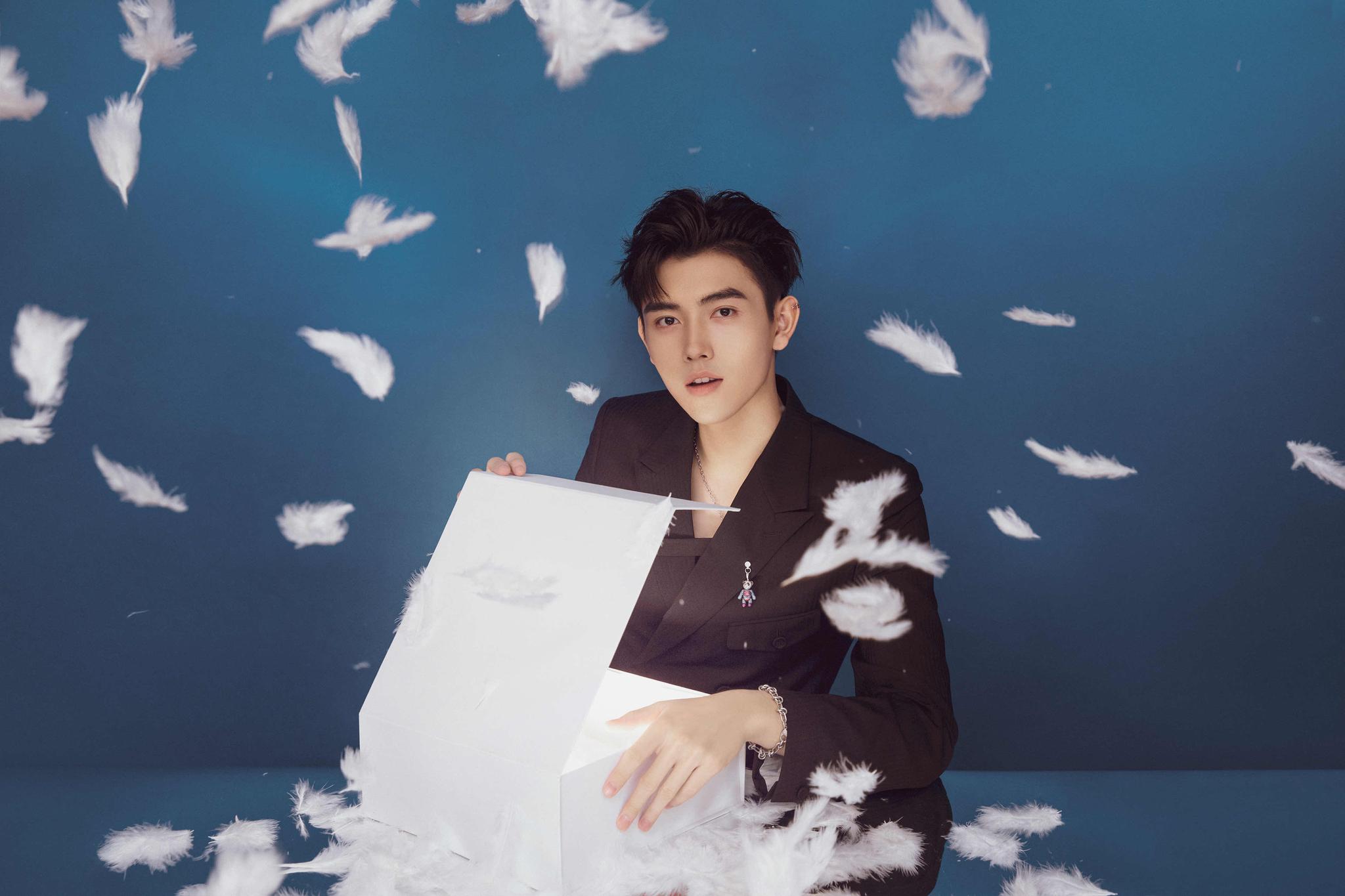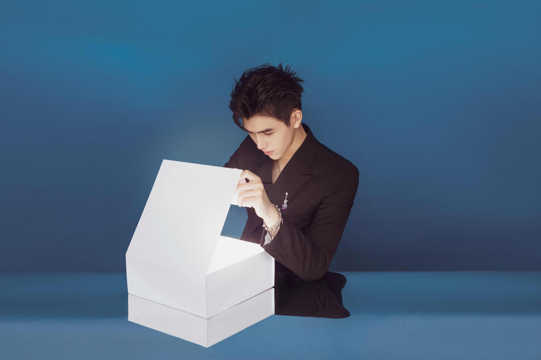 当天陈飞宇还拍摄了一组奇幻童趣大片。用“开箱”设定的前后来体现“奇幻”, “开箱”前是成熟优雅的绅士,“开箱”后是充满童真的大男孩,大片中呈现的青蛙、羽毛、潘多拉魔盒等元素,不仅童趣满满,还独有一份摩登时尚感,充满巧思,创意满分。