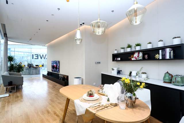 当然,在门店二楼华为设置了沉浸式体验区,为消费者提供智能家居产品,客厅和餐厅两个场景让来此的消费者可以深度体验将产品带回家后是什么样的感受。在这里,我们可以语音控制扫地机器人干活,躺在床上可以语音关闭吊灯,甚至还可以提前设置好专门的场景并匹配产品。观影模式下自动调暗灯光,出门后扫地机器人开始工作,睡觉的时候空气净化器还能自动变成静音模式,完全不用你在劳心费神的想着乱七八糟的事情,也不用上了床才发现要调整家居设备,还要掀被起床。