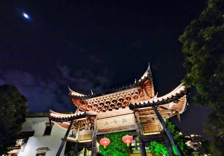 在酒店放下行李,我们就赶不及的去逛街找小吃了,不过,夜色阑珊的古老街道,别有一番情调,所以,我们边走边拍,先观光下哈。