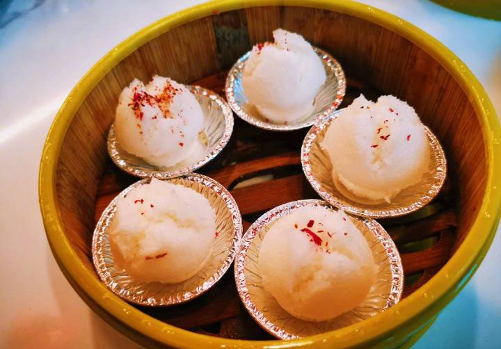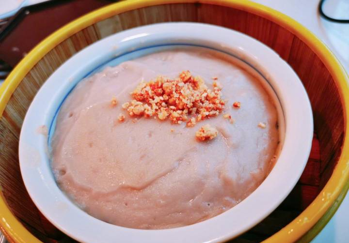 福州人喜欢吃甜的东西,所以很多的福州美食都离不开一个甜字,芋泥常见的一道甜食,一般以“压轴”形式上桌。芋泥是将槟榔芋头蒸熟后压制成泥状,以碎红枣、瓜子仁、樱桃、冬瓜糖等做辅料。色泽灰暗,尝起来香郁甜润。