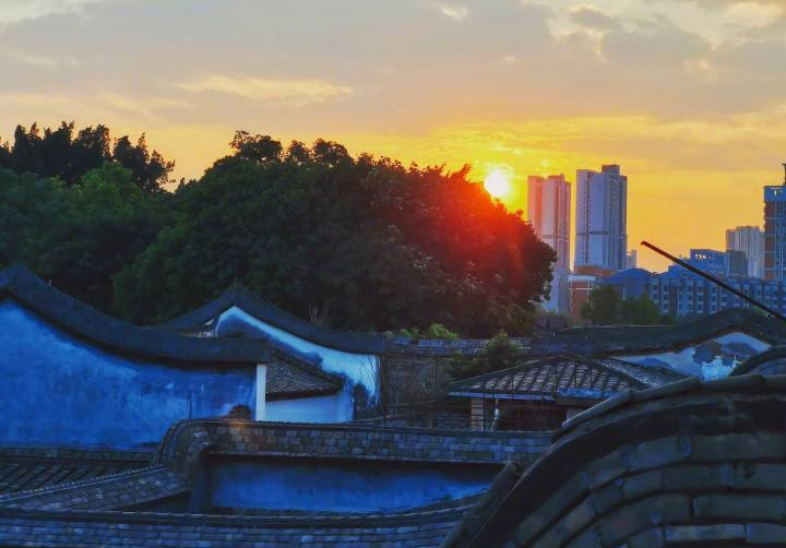 正当夕阳西下时,在酒店阳台望出去,这个角落,这座两千年历史的文化名城,充满古朴味道。