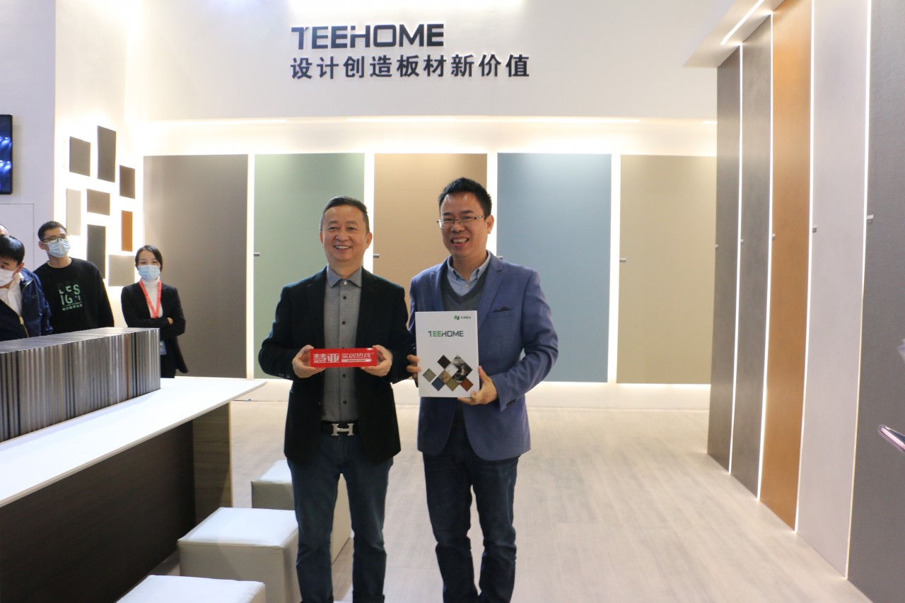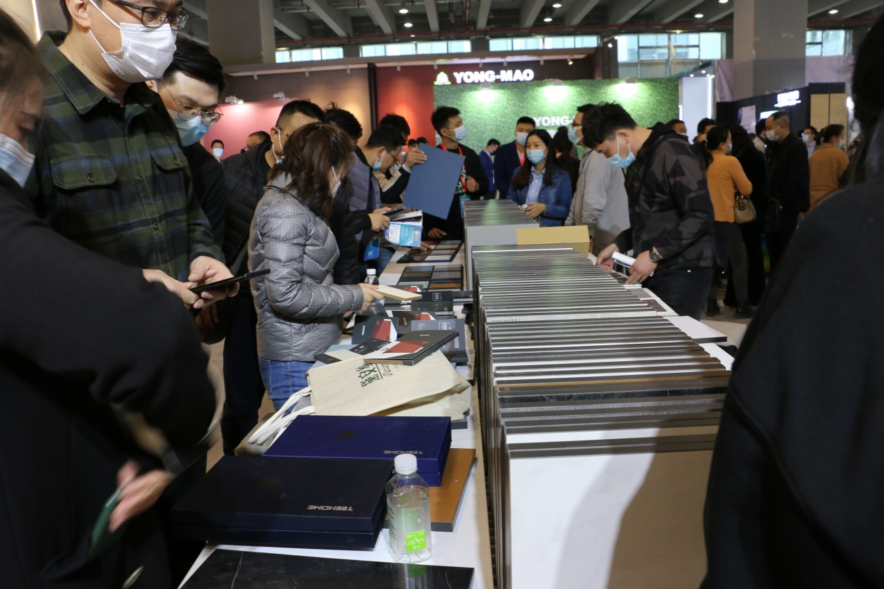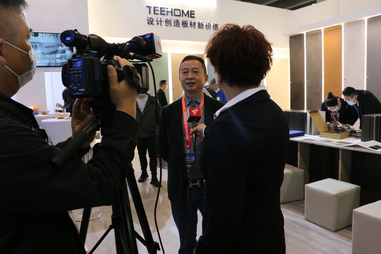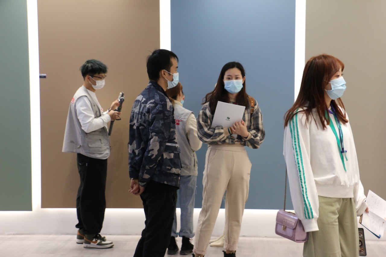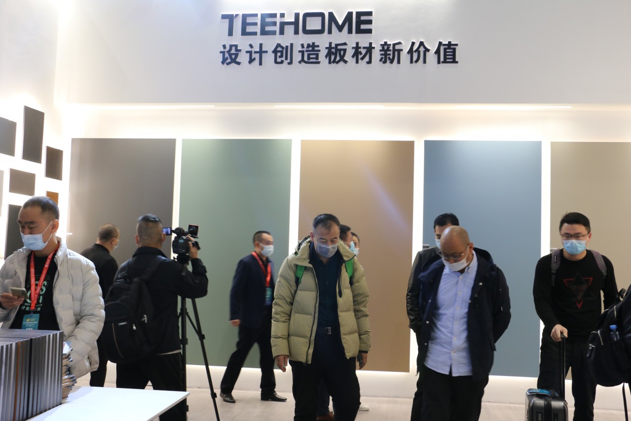 开展首日,天湘板业新材元素馆,以包容开放式的展位设计展示着全新的、紧跟国际的潮流元素及2020年最新的研发成果,让前来参观、咨询的人络绎不绝,各大行业媒体也纷纷前来采访报道,驻足打卡。