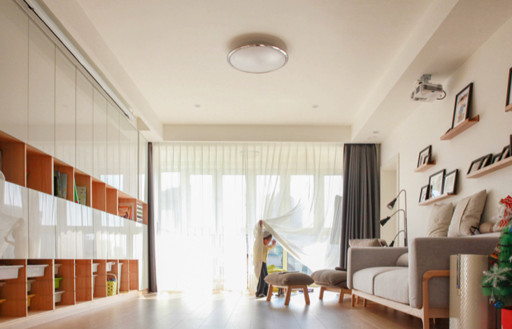 ▲ 三岁的孩子需要更多的活动空间,和家人玩耍。客厅的餐桌、沙发都很轻,三岁的女儿都能挪动,整个空间能随时变换布局应对不同场景。和家人的互动,才是整个房子的灵魂。