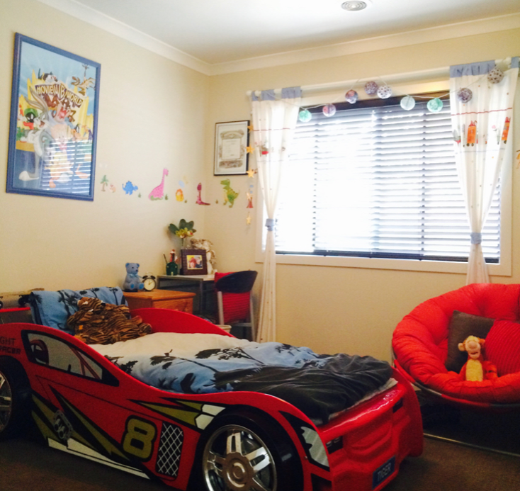 ▲ 屋主的儿子从小就喜欢车,学会的第一个单词是"Car",所以,在孩子不到两岁的时候,就买了一张设计逼真,连车轮胎也带有刹车碟的立体车型床给他。