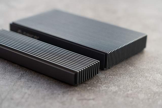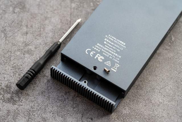 我们知道M.2 NVMe硬盘最大的问题就是散热,因此这款硬盘盒的机身正面采用了条纹设计,这样一来可以进一步增加表面的散热面积,并增加外部风道,从而让热量得到快速的散发。