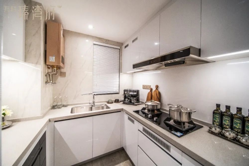 厨房为“U”型设计,“U”型厨房将储藏区、洗涤区、烹饪区,三个厨房使用频率较高的区域连线,形成高效的黄金三角位,小幅侧身移动即可完成烹饪工作。