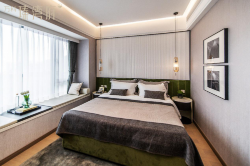 主卧大套房设计,配有270°采光飘窗,在最大化增加采光面、保证充分日照的同时,将居室延伸到户外,实现真正意义上的“临窗见景”。