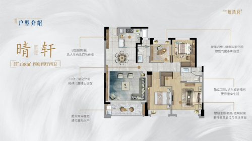 138㎡奢享四房两厅,延续高标准生活尺度