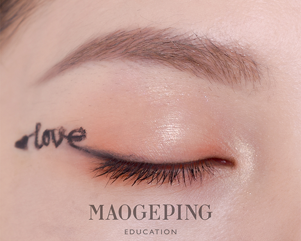 Step 7:然后在眼尾用黑色眼线笔在眼尾写一个连笔的“LOVE”和爱心~