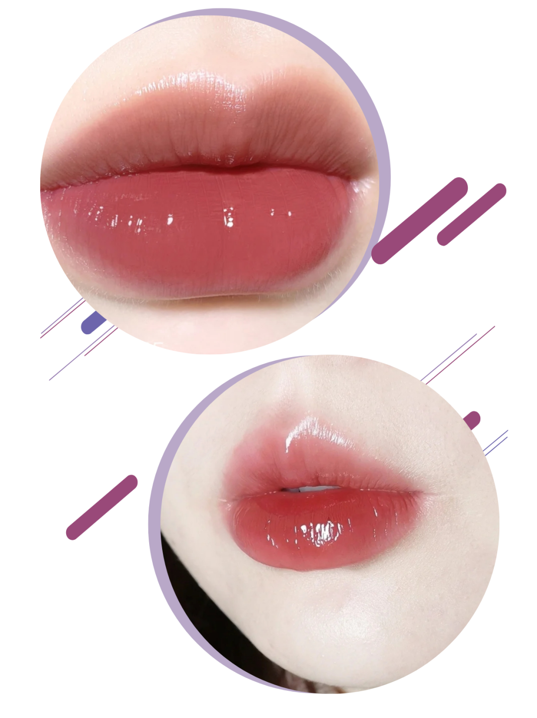 玻璃唇妆效,上嘴水润,会根据自身唇色ph值变色哇~后续也不会拔干,很持久!不沾杯。出门约会怕吃饭掉色就涂这只!