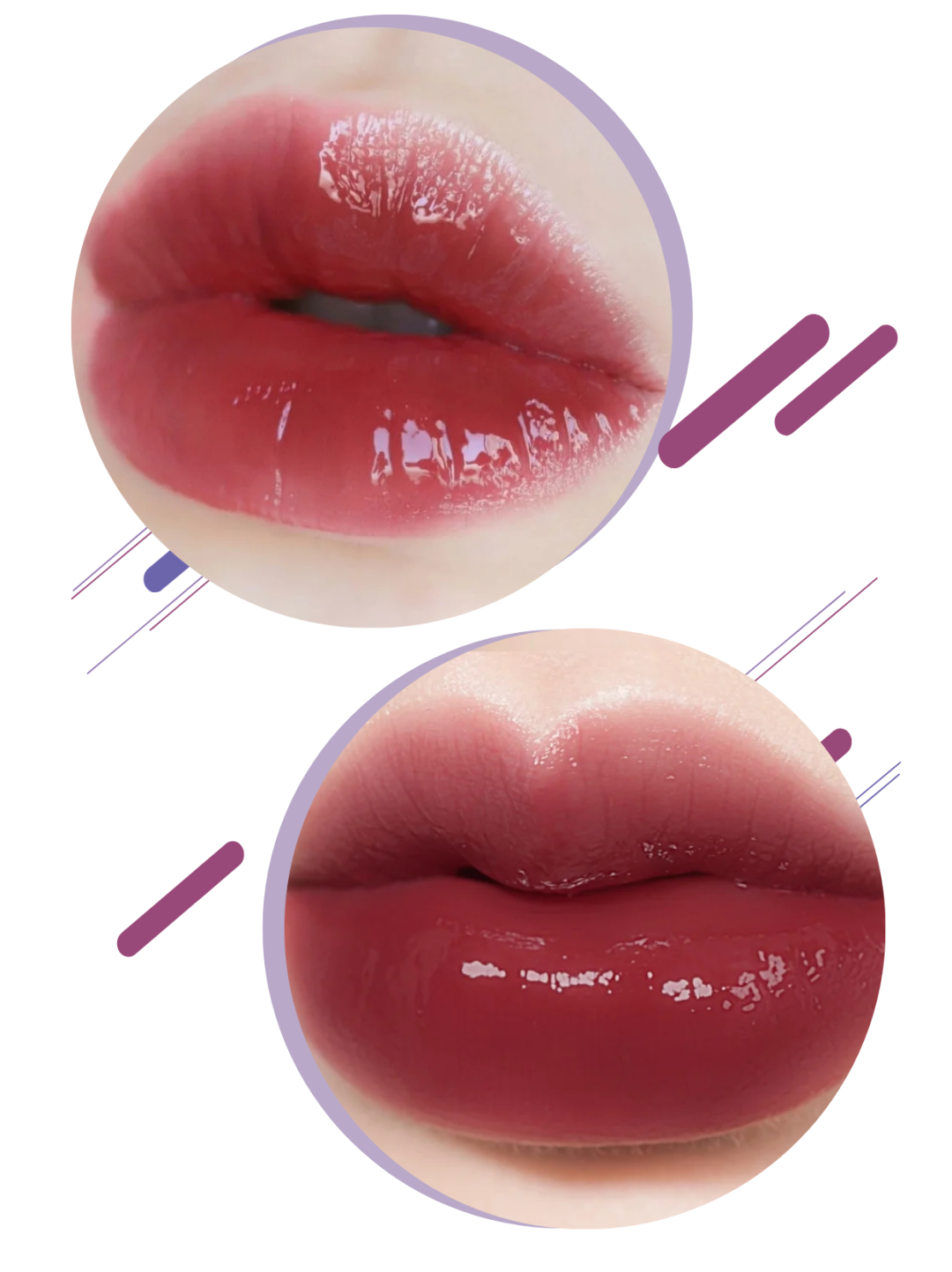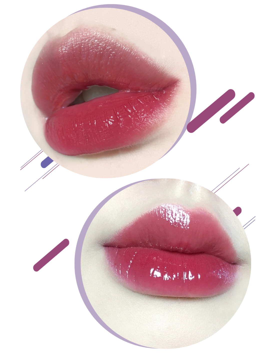 上唇显得嘴唇嘟嘟的很饱满,也很清透,涂厚了不觉得油腻。不仅水光的光泽无敌美妙,会成膜且不糊嘴,水光感的妆效可以遮盖住唇纹。
