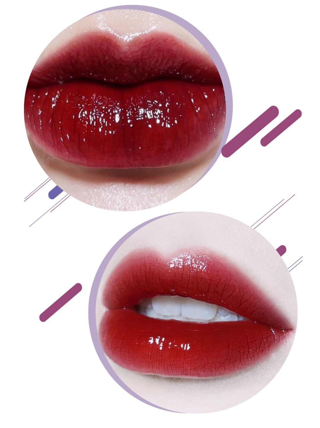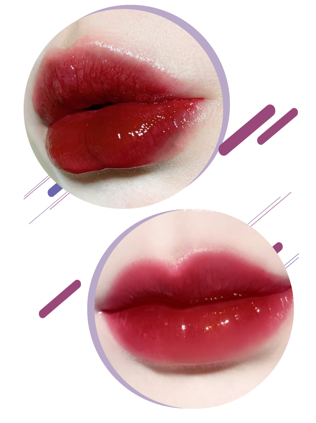 不挑肤色也不挑妆容,谁涂谁好看!!由于是镜面质感厚涂完全不影响它的水光感,宛若一颗熟透的车厘子,娇艳欲滴!超级无敌显白!!!