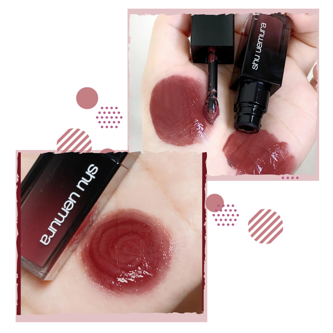 刷头和气味都和其他系列的唇釉一样!说实话在所有成膜的唇釉里我觉得植村秀是最牛皮的!因为它不染唇!